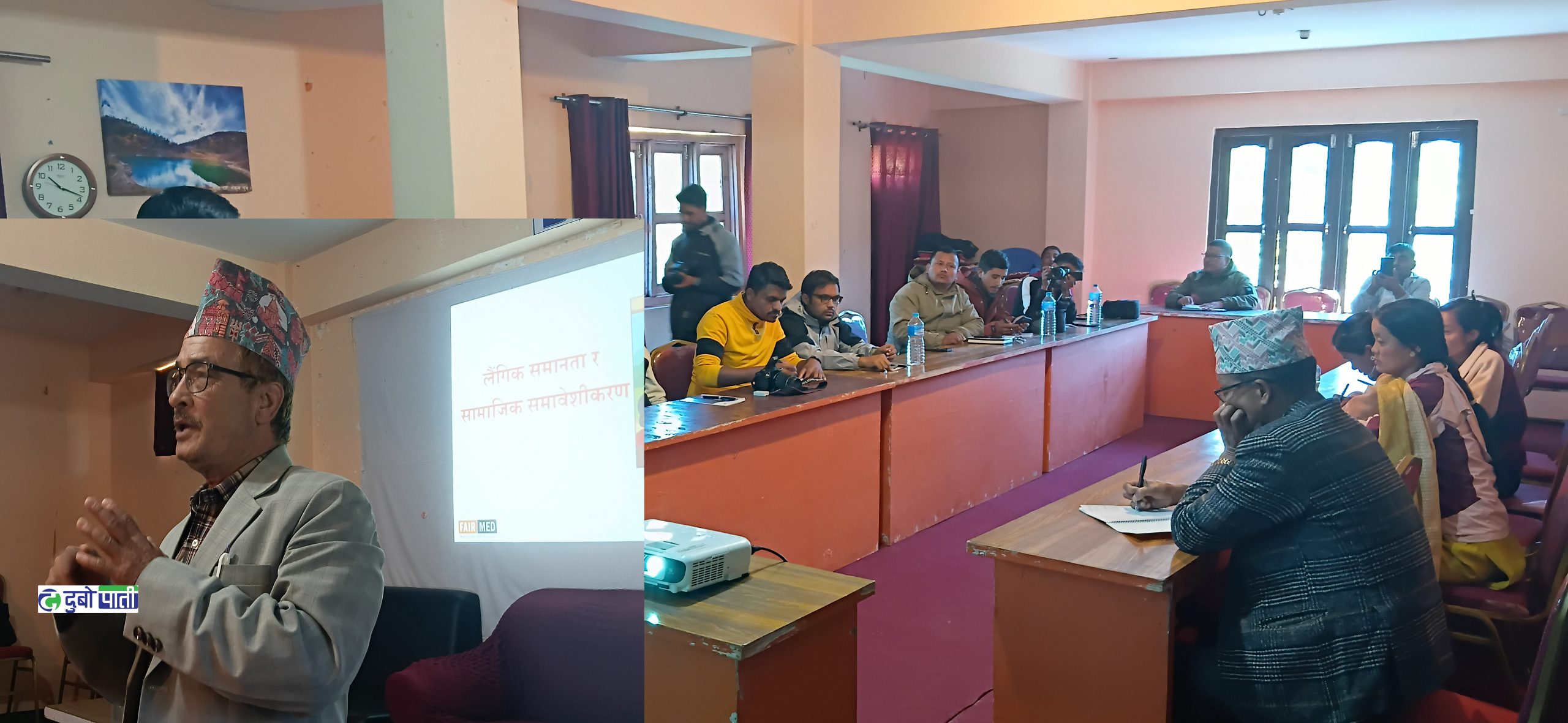 फेयरमेड फाउण्डेशन नेपाल रुकुमपूर्वका समावेशी तथा स्वास्थ्य प्रवद्र्धन अधिकृत दानबहादुर कार्कीले लैगिंक समानता र सामाजिक समावेशीकरण सम्बन्धी व्यवस्थाबारे प्रस्तुतिकरण राख्नु भएको थियो । कुनै पनि लैगिंक, जातिय, क्षेत्र र सामाजिक रुपले भेदभाव गर्नु नहुने र यदि भेदभाव गरेको पाएमा उक्त व्यक्तिलाई कानुनी सजाय के कति हुन्छ भन्नेबारे कार्कीले प्रस्तुतिकरण राख्नु भएको थियो । सभ्य नागरिक समाज निर्माण गर्नमा आम नागरिक एक भएर लाग्नु पर्ने कार्कीको भनाइ रहेको छ ।