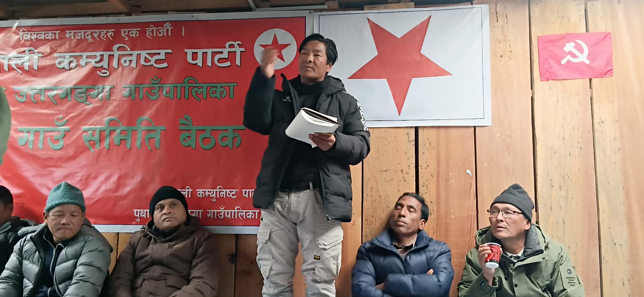 नेपाली कम्युनिस्ट पार्टी रुकुमपूर्व पुथाउत्तरगङ्गा गाउँ समितिको बैठक बसेको छ । आज मङ्गलबार पुथाउत्तरगङ्गा-१० तकमा नेपाली कम्युनिस्ट पार्टी पुथाउत्तरगङ्गा गाउँ समितिको बैठक बसेको हो ।